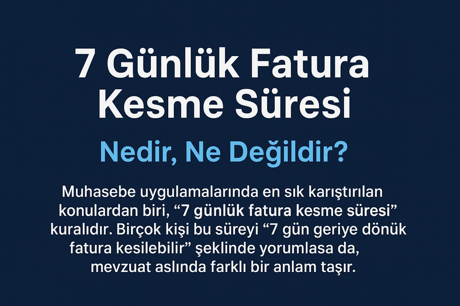 “7 günlük fatura kesme süresi”, faturanın tarihini geriye almak için değil, işlemden sonra yasal sürede düzenleme imkânı tanımak için verilmiş bir haktır.